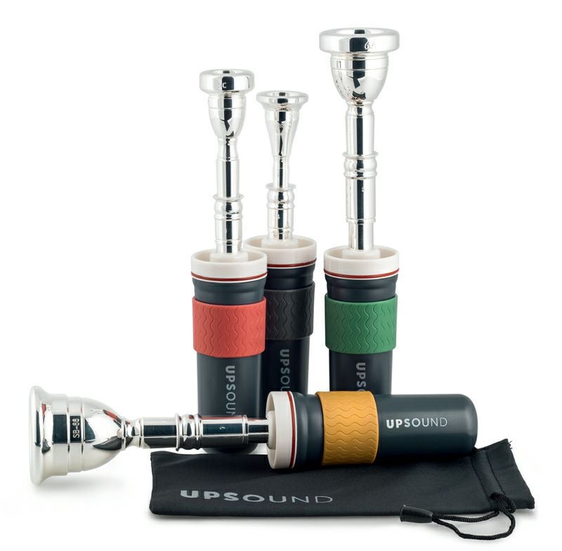 楽器を吹く前に、楽器が吹けないときに、お使いのマウスピースを挿してウォーミングアップができる便利グッズ「UPSOUND」。