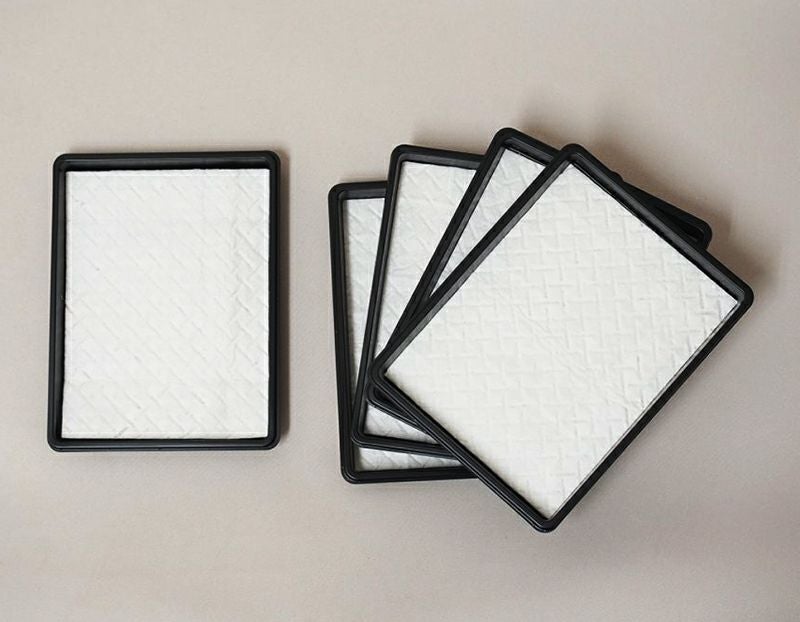 プラスチック(ポリスチレン製)の受け皿と、水分をジェリー状に固める高分子吸収体を含むシートがセットされています。
