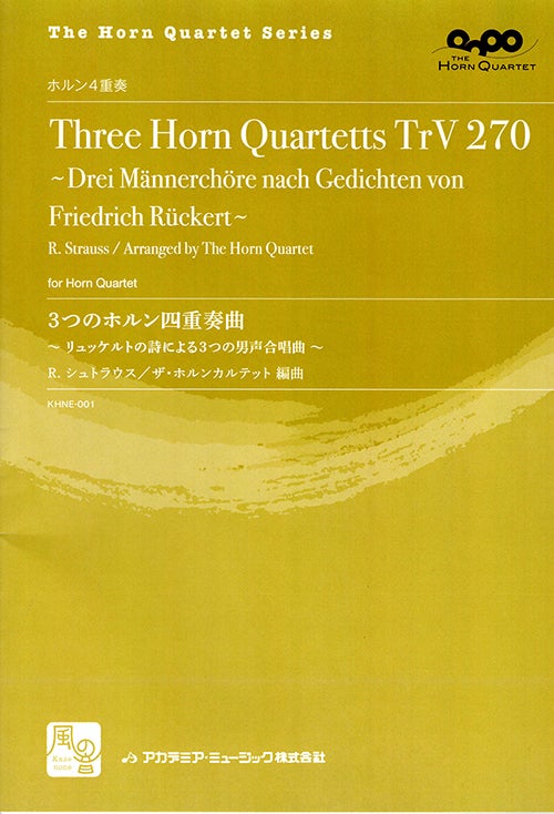 4. 楽譜/ホルン四重奏 The Horn Quartet Series 「3つのホルン四重奏曲~リュッケルトの詩による3つの男声合唱曲~」作曲:R.シュトラウス